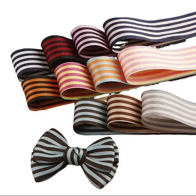 Wholesale Double Face Polyester Cotton Blend Striped Ribbon For Diy Hair Bows Gift Wrap Cake Packing Decoration